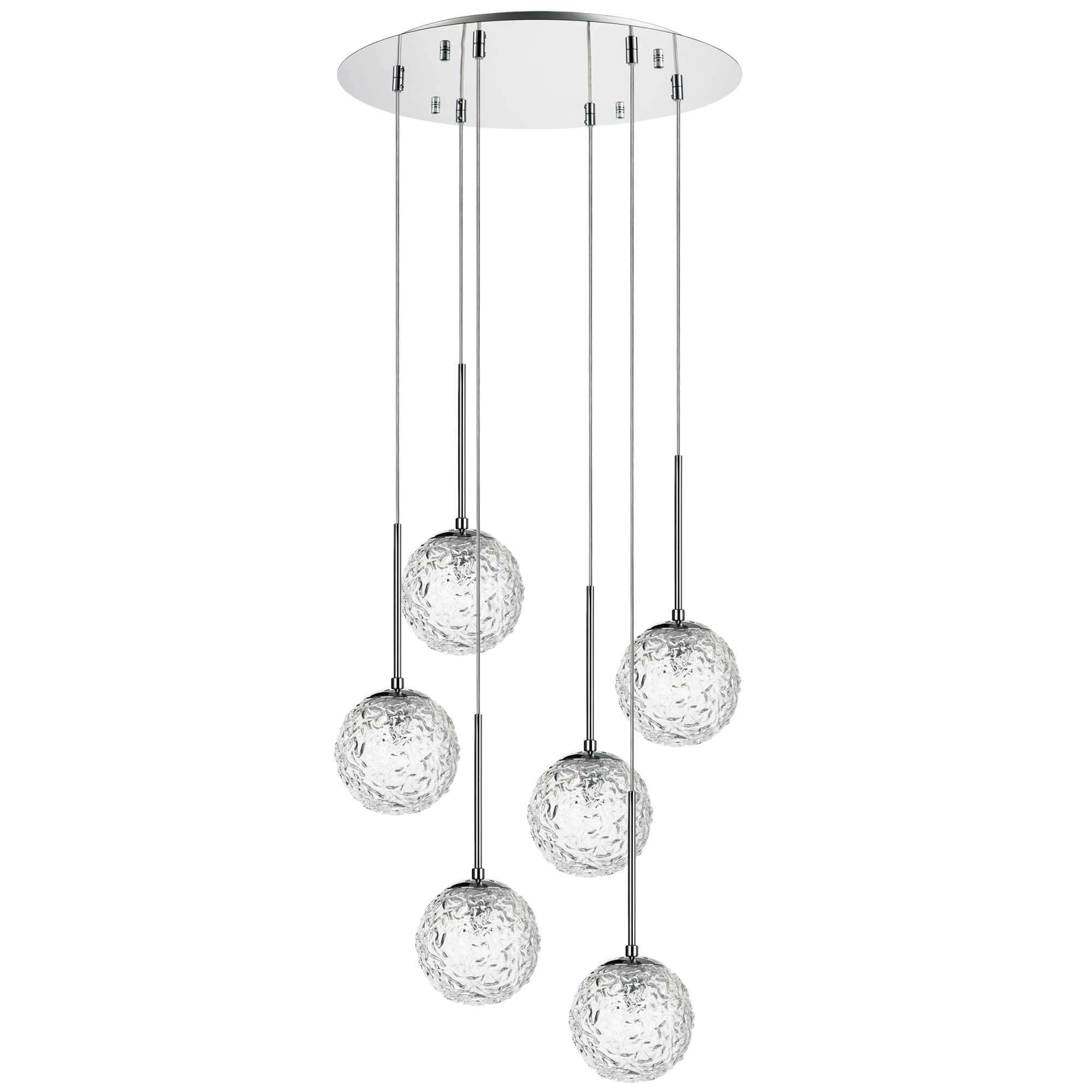 Высота min-max (см): 40-190; Ширина (см): 50; Вес (кг): 6,3; Кол-во ламп: 6хG9; Мощность max (W): 40; Цвет основания/цвет стекла или абажура: Хром;