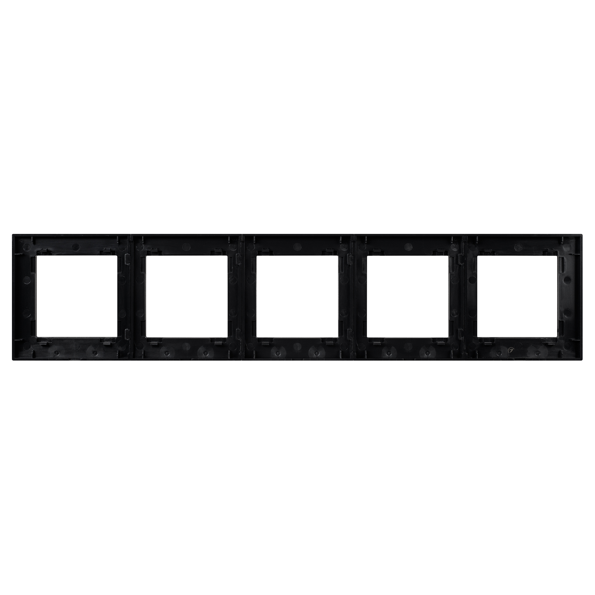 Рамка алюминиевая на 5 пост, под встраиваемый механизм (квадрат). Цвет - черный. Ориентации монтажа - горизонтальная.